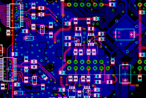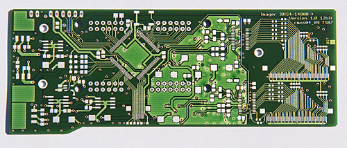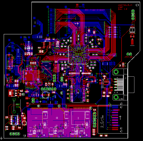 Das Ding musste also kleiner werden und zwar deutlich. Also wurde alles überarbeitet und neue Platinen gemacht. Diesmal als Multilayer mit fast nur noch SMD Bauteilen. Die selber zu ätzen ist zu aufwändig und ging daher an einen auf Prototypen spezialisierten Dienstleister. So sah das dann im CAD und als fertige Platine aus:
